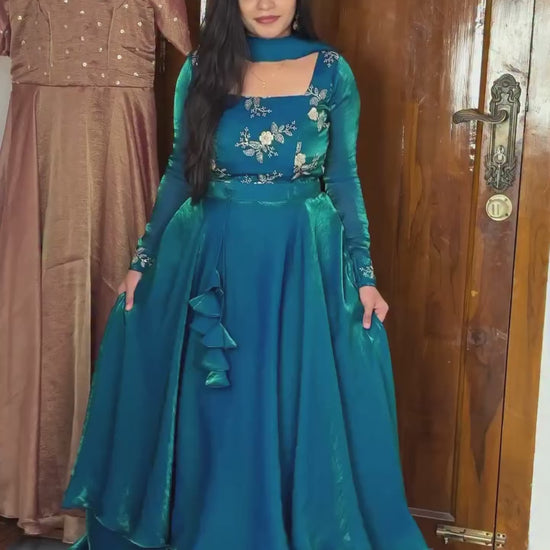 Rama Designer Fandy Satin Lehenga Peplum Set with Embroidery & Sequins